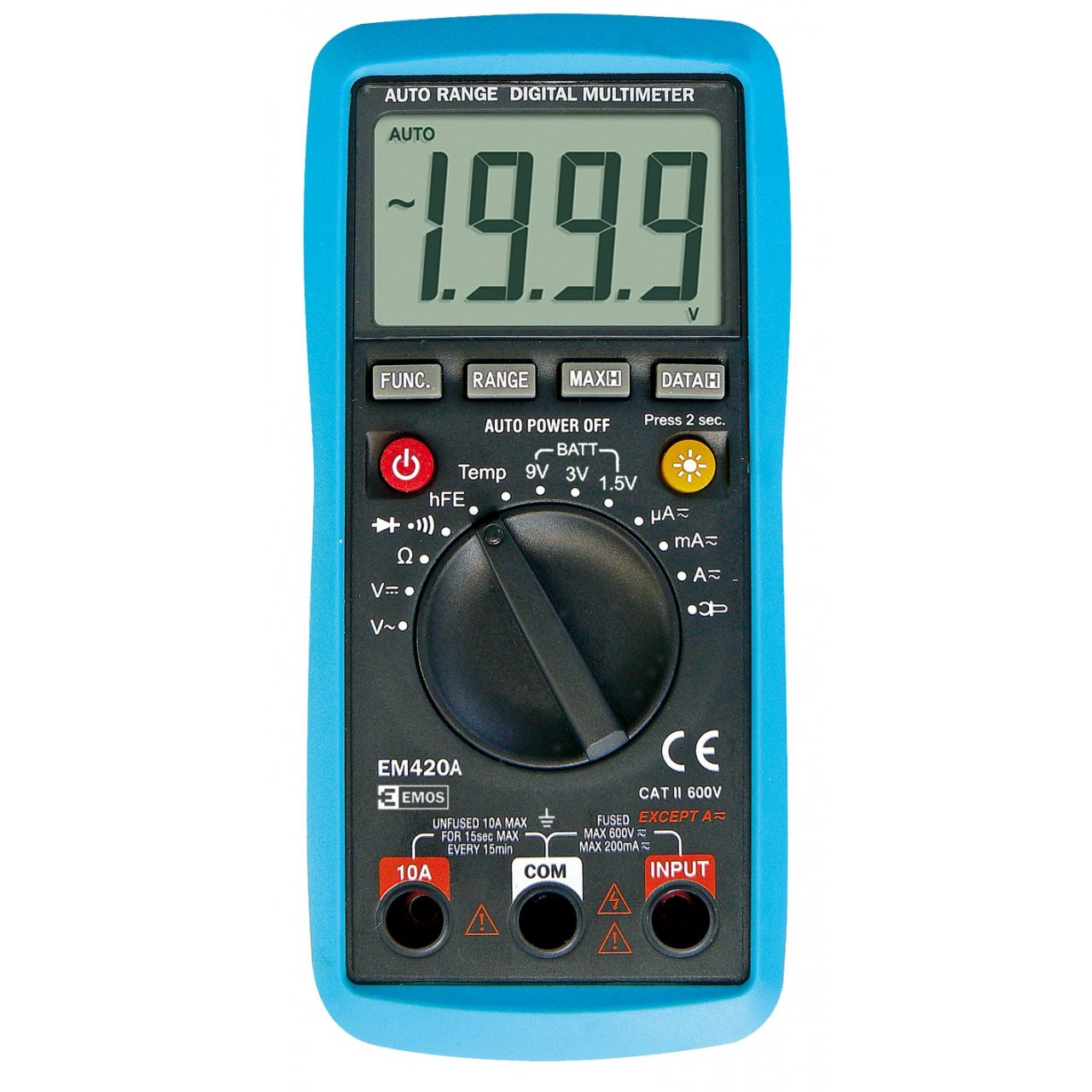 zasilanie: 3 x 1,5 AAA, podświetlany wyświetlacz LCD, zakresy pomiarowe:, - napięcia:, AC: od 2 V do 600 V, DC: od 200 mV do 600 V, - natężenia:, AC: od 200 uA do 10 A, DC: od 200 uA do 10 A, - oporności: od 1 Ohm do 20 MOhm, - pojemności: od 20 nF do 100